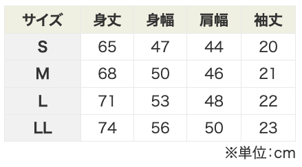●サイズ:ユニセックス / S、M、L、LL